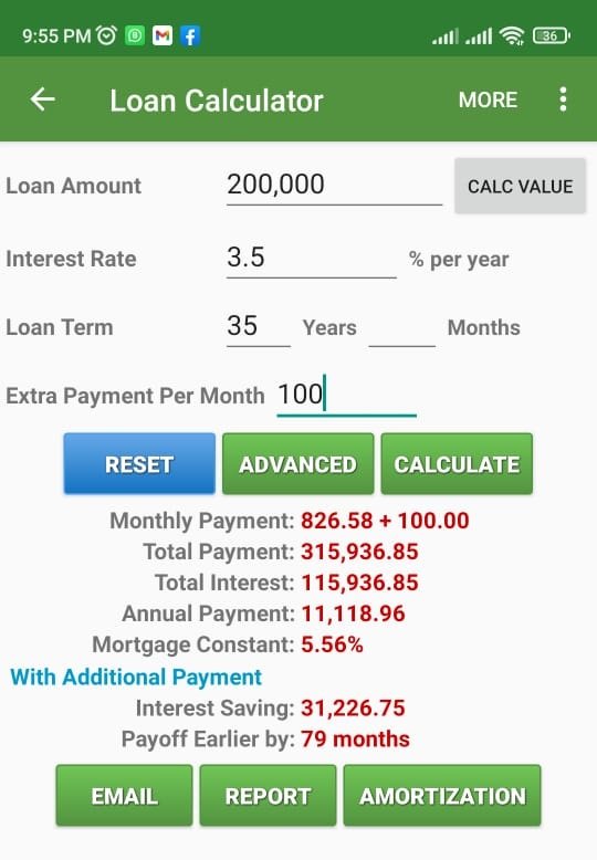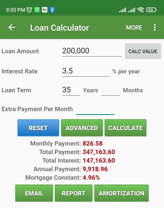 Cuba masukkan macam maklumat tadi. Pinjaman RM 200K, selama 35 tahun.