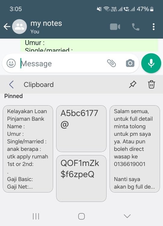 Ayat atas ni anda tak perlu tulis satu satu, kalau guna whatsapp boleh copy dan pin-kan sahaja ayat atas ni. Nanti mudah, kalau ada orang whatsapp terus tekan ayat yang sudah di pin sahaja.