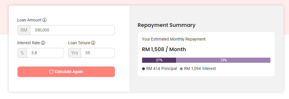 Seperti contoh, katakan anda beli rumah teres di Bertam, dan kebetulan memang harganya dalam RM 350K.