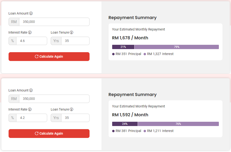 Gambar di atas ni, saya tunjuk beza rate 4.6% dengan 4.2%.